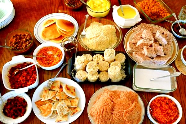 Zum Frühstück werden in meiner Heimat meist Mehlspeisen mit scharfen oder süßen Beilagen gegessen.