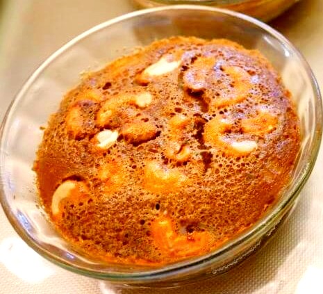 Cashewnüsse zugeben, in eine gefettete, feuerfeste Form geben und im Backofen